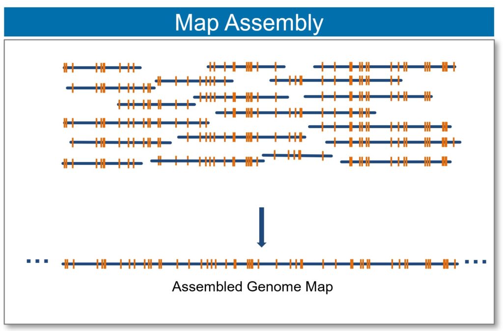 Single DNA molecules are translocated through a silicon nanochannel, and the labeled locations are electronically detected to determine the distance between sequence-specific tags on individual molecules. While each electronic event is measured across the linear DNA molecule, there is a time-to-distance conversion and the entire genome has enough overlap to assemble what is effectively a restriction map of overlapping fragments (see figure 2).
